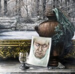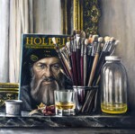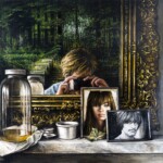 Het begon met willekeurige dierbare souvenirs op een marmeren plaat onder de spiegel in mijn slaapkamer. Langzaam ontstaan zo stillevens die ik vastleg in schetsen en na verloop van tijd uitwerk in olieverf op linnen. Vermengd met mijn ervaringen en herinneringen aan mensen die me inspireren, vormen deze composities visuele weergaven van mijn leven. (hieronder een selectie)